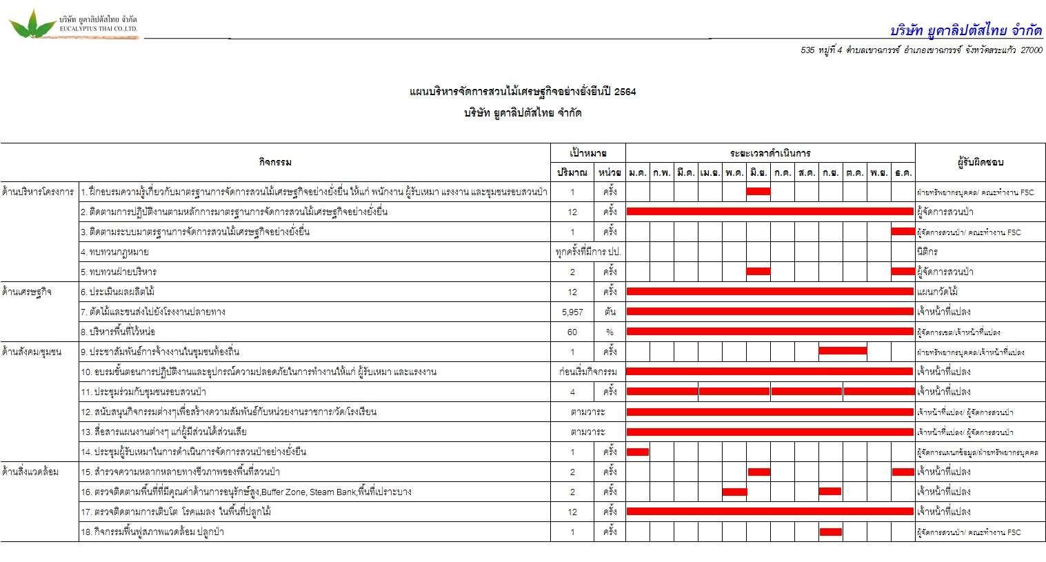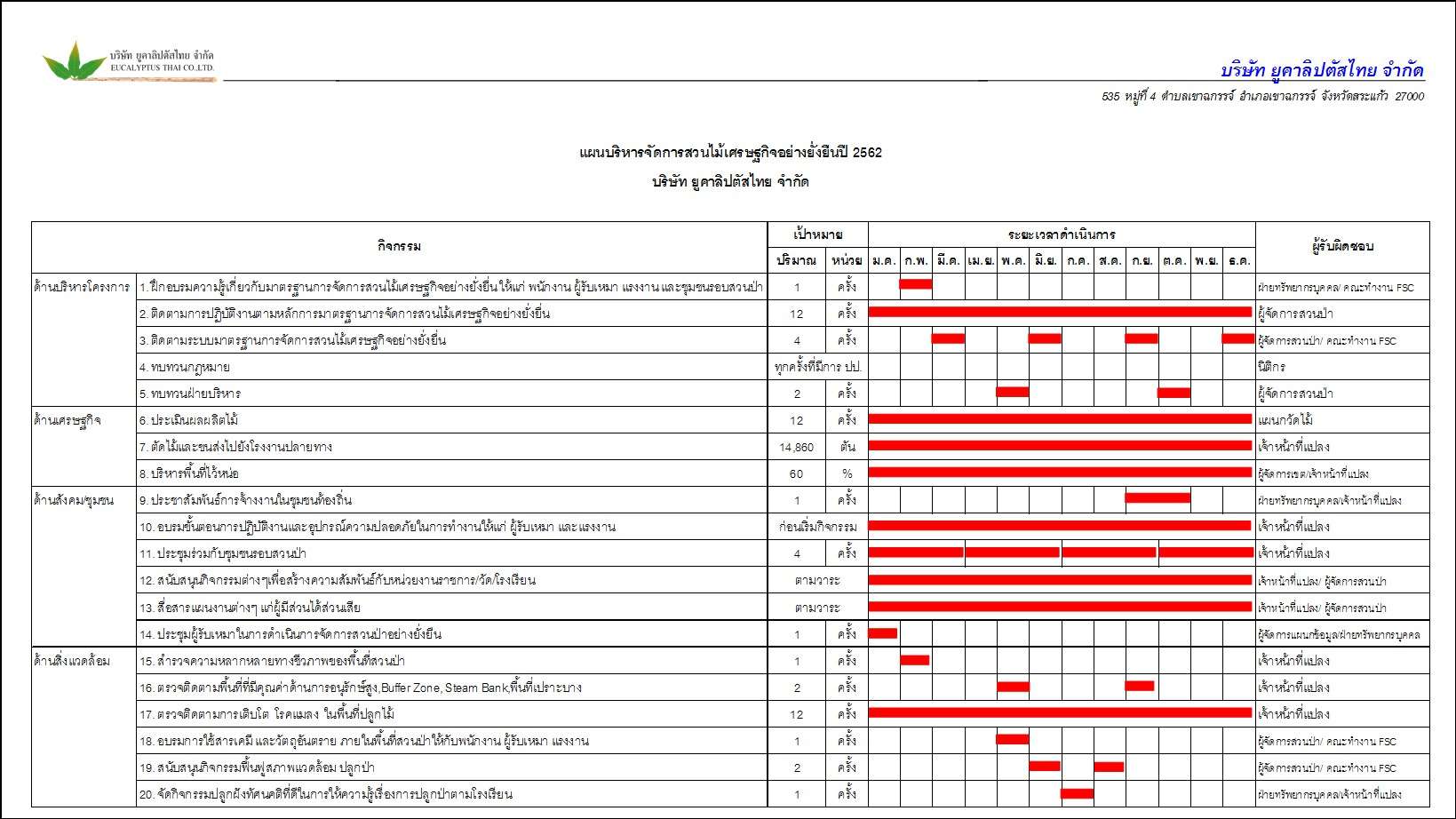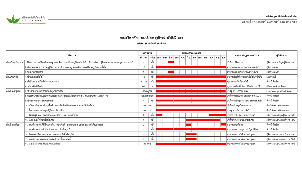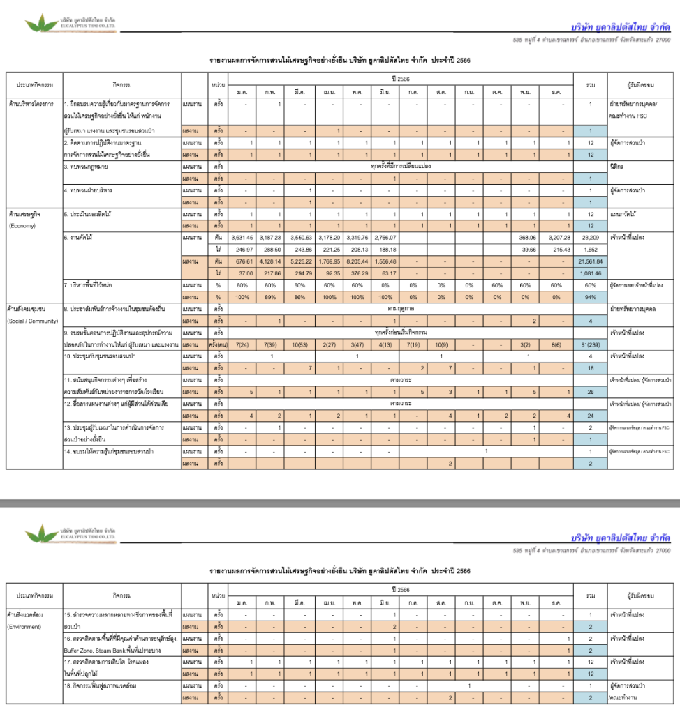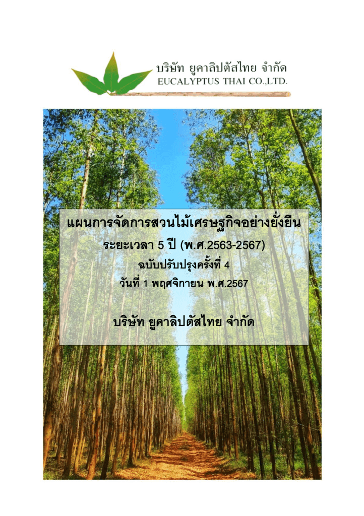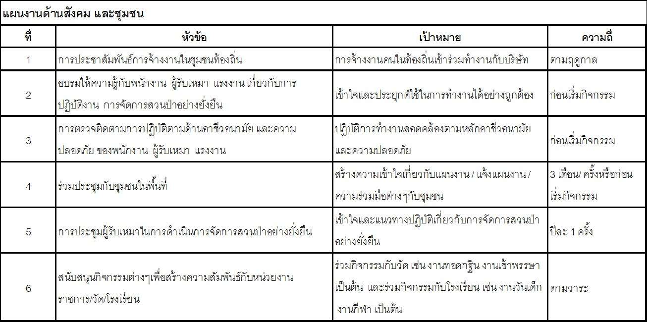 แผนการจัดการสวนป่า แผนการดำเนินงานด้านเศรษฐกิจ สังคม และสิ่งแวดล้อม ปี 2563 - 2567 แผนการปฏิบัติงานด้านเศรษฐกิจ ประจำปี 2563 - 2567 แผนการปฏิบัติงานด้านสังคม ประจำปี 2563 - 2567 แผนการปฏิบัติงานด้านสิ่งแวดล้อมประจำปี 2563 - 2567 แผนบริหารจัดการสวนไม้เศรษฐกิจอย่างยั่งยืน ปี 2567 รายงานผลการจัดการสวนไม้เศรษฐกิจอย่างยั่งยืน ประจำปี 2567 แผนบริหารจัดการสวนไม้เศรษฐกิจอย่างยั่งยืน ปี 2568 รายงานผลการจัดการสวนไม้เศรษฐกิจอย่างยั่งยืน ประจำปี 2568 แผนบริหารจัดการสวนไม้เศรษฐกิจอย่างยั่งยืน ปี 2566 รายงานผลการจัดการสวนไม้เศรษฐกิจอย่างยั่งยืน ประจำปี 2566 แผนบริหารจัดการสวนไม้เศรษฐกิจอย่างยั่งยืน ปี 2565 รายงานผลการจัดการสวนไม้เศรษฐกิจอย่างยั่งยืน 2565 แผนบริหารจัดการสวนไม้เศรษฐกิจอย่างยั่งยืนปี 2564 รายงานผลการจัดการสวนไม้เศรษฐกิจอย่างยั่งยืน 2564 แผนบริหารจัดการสวนไม้เศรษฐกิจอย่างยั่งยืนปี 2563 รายงานผลการจัดการสวนไม้เศรษฐกิจอย่างยั่งยืน 2563 แผนบริหารจัดการสวนไม้เศรษฐกิจอย่างยั่งยืนปี 2562 แผนการดำเนินการตัดไม้ 5 ปี แผนบริหารจัดการสวนไม้เศรษฐกิจอย่างยั่งยืนปี 2562