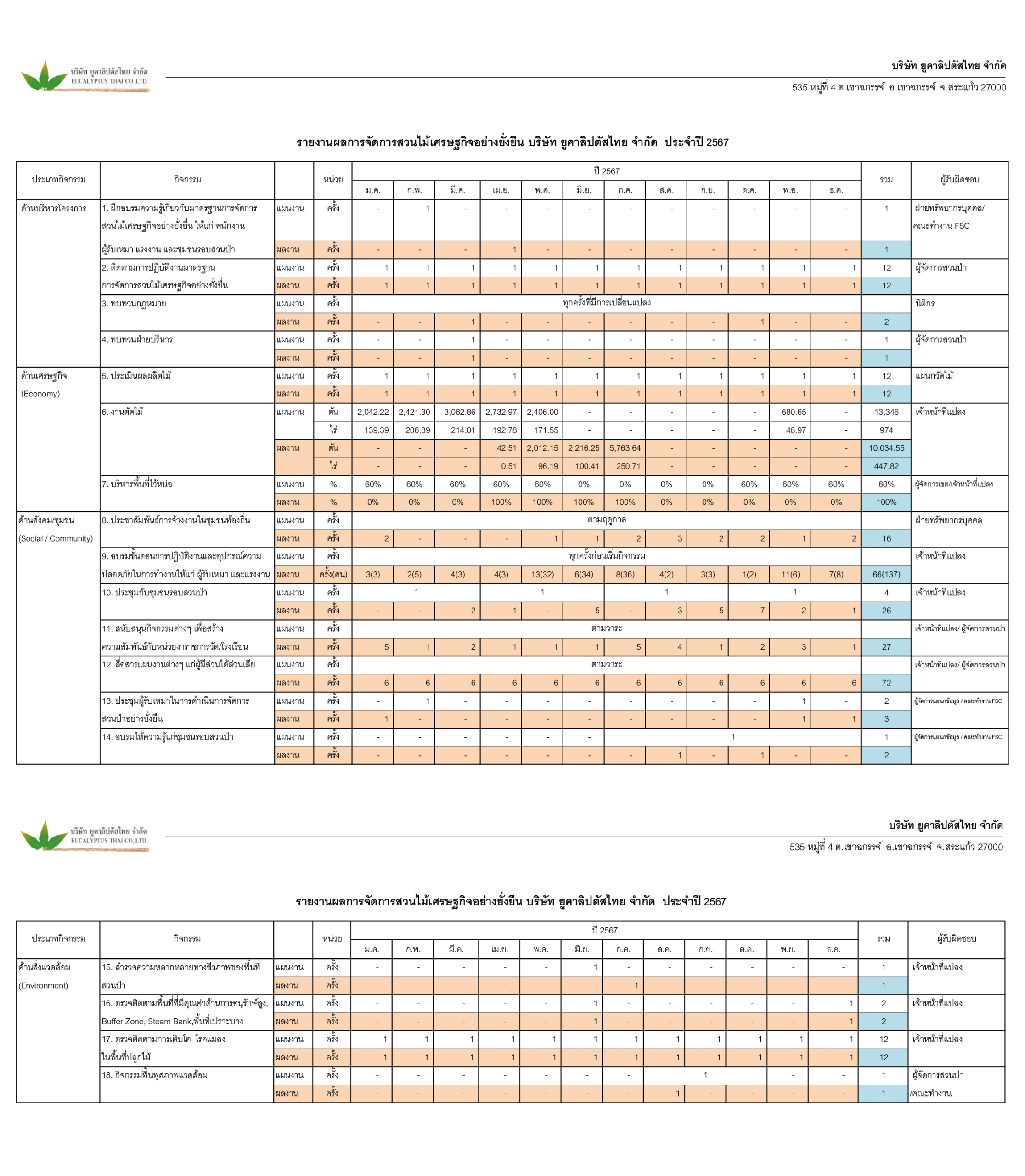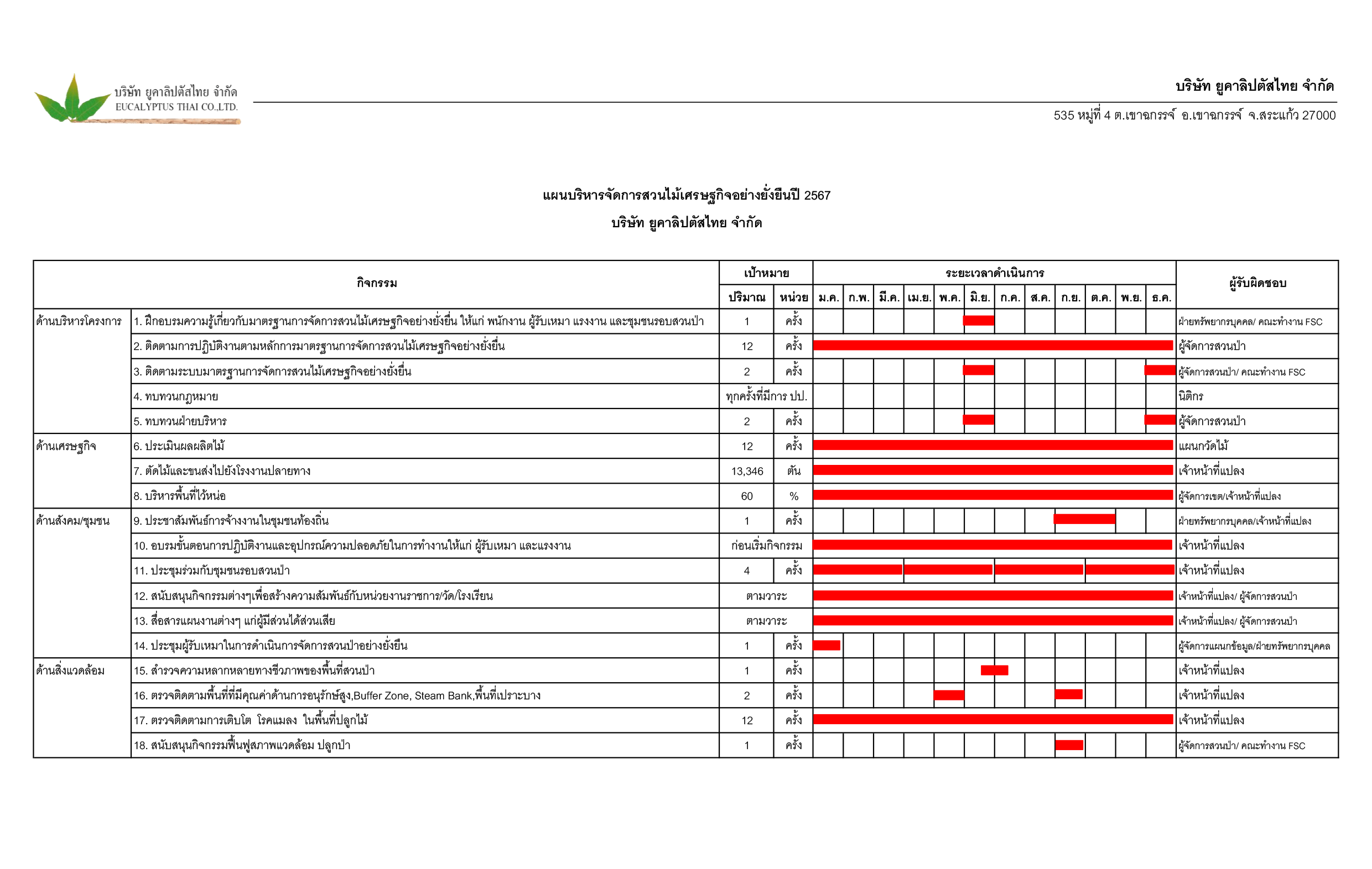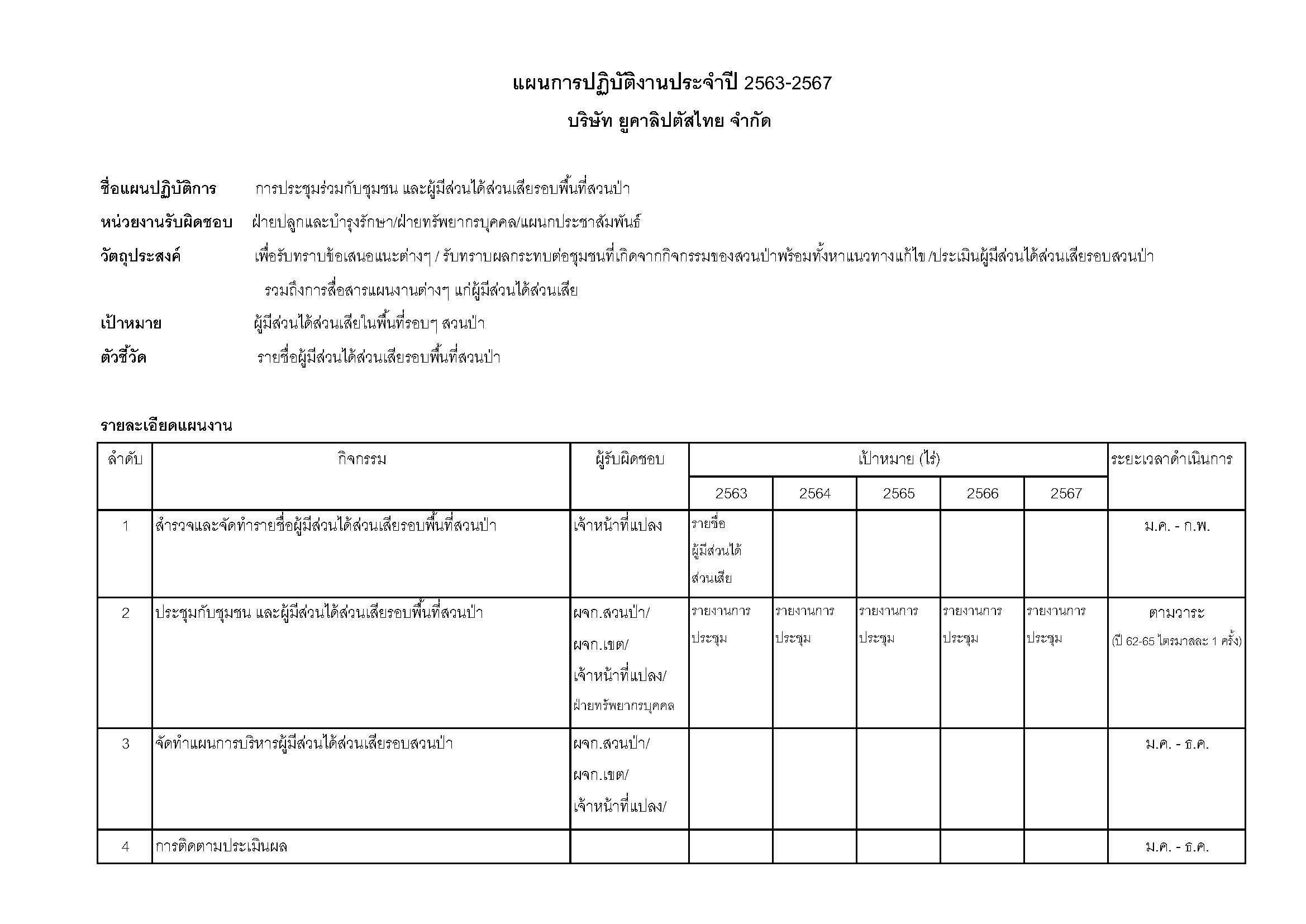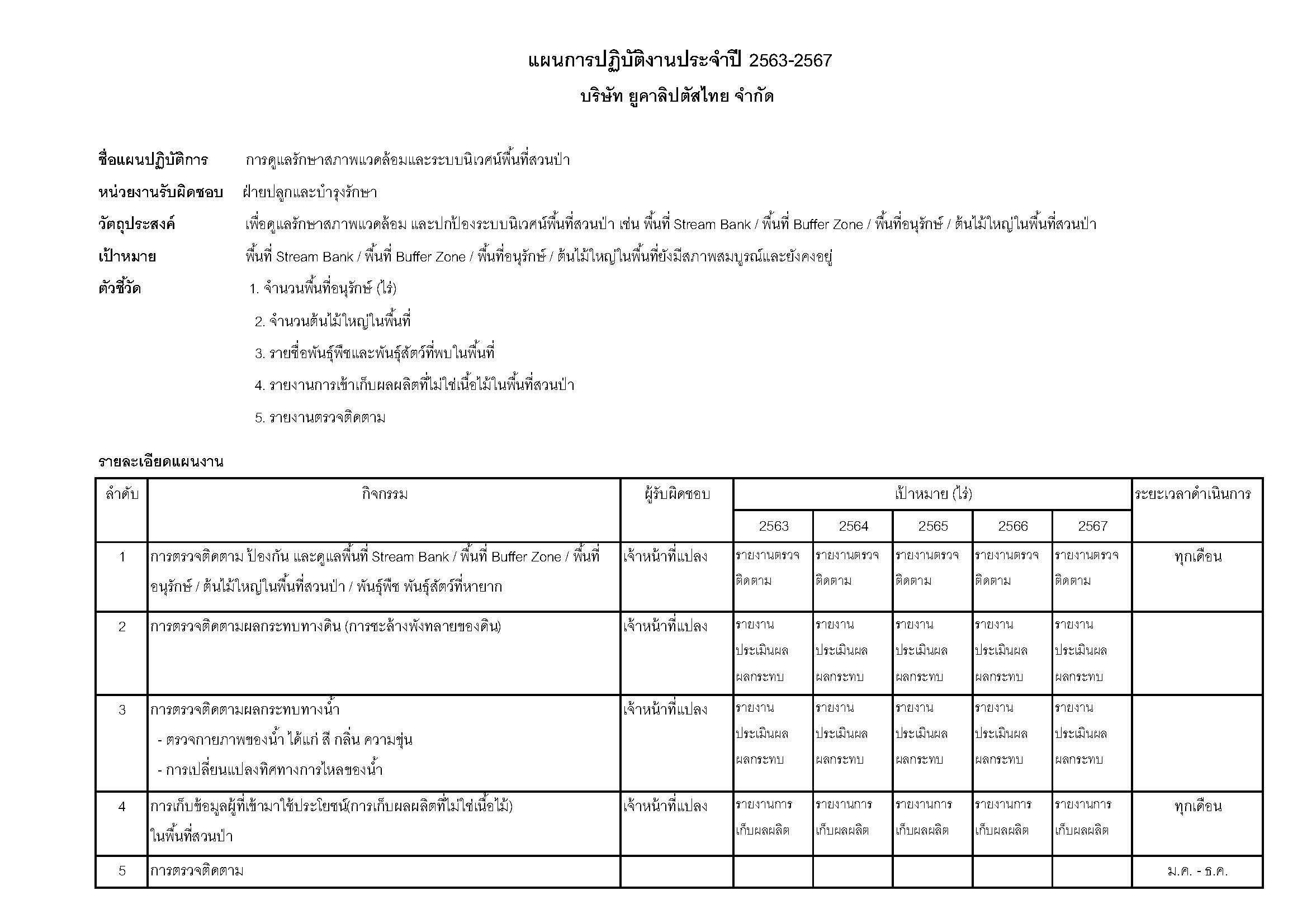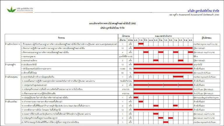 แผนการจัดการสวนป่า แผนการดำเนินงานด้านเศรษฐกิจ สังคม และสิ่งแวดล้อม ปี 2563 - 2567 แผนการปฏิบัติงานด้านเศรษฐกิจ ประจำปี 2563 - 2567 แผนการปฏิบัติงานด้านสังคม ประจำปี 2563 - 2567 แผนการปฏิบัติงานด้านสิ่งแวดล้อมประจำปี 2563 - 2567 แผนบริหารจัดการสวนไม้เศรษฐกิจอย่างยั่งยืน ปี 2567 รายงานผลการจัดการสวนไม้เศรษฐกิจอย่างยั่งยืน ประจำปี 2567 แผนบริหารจัดการสวนไม้เศรษฐกิจอย่างยั่งยืน ปี 2568 รายงานผลการจัดการสวนไม้เศรษฐกิจอย่างยั่งยืน ประจำปี 2568 แผนบริหารจัดการสวนไม้เศรษฐกิจอย่างยั่งยืน ปี 2566 รายงานผลการจัดการสวนไม้เศรษฐกิจอย่างยั่งยืน ประจำปี 2566 แผนบริหารจัดการสวนไม้เศรษฐกิจอย่างยั่งยืน ปี 2565 รายงานผลการจัดการสวนไม้เศรษฐกิจอย่างยั่งยืน 2565 แผนบริหารจัดการสวนไม้เศรษฐกิจอย่างยั่งยืนปี 2564 รายงานผลการจัดการสวนไม้เศรษฐกิจอย่างยั่งยืน 2564 แผนบริหารจัดการสวนไม้เศรษฐกิจอย่างยั่งยืนปี 2563 รายงานผลการจัดการสวนไม้เศรษฐกิจอย่างยั่งยืน 2563 แผนบริหารจัดการสวนไม้เศรษฐกิจอย่างยั่งยืนปี 2562 แผนการดำเนินการตัดไม้ 5 ปี แผนบริหารจัดการสวนไม้เศรษฐกิจอย่างยั่งยืนปี 2562